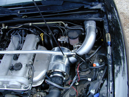 Custom Miata Cold Air/Cowl Intake Also check out Dan's Cold Air Box for more inspiration! UPDATE: March 2004 Due to concerns that K&N style intakes don't filter as well as traditional paper filters, I've redone the intake using the stock filter from a 1988-1990 Honda Prelude thanks to a suggestion by Cliff Knight. This filter is a conical paper filter that you will find remarkably similar to a K&N in basic shape and should still flow better than the stock Miata box. Because I had to make a new can to hold the new filter, I also took the easy way out with the cold duct and used a flexible dryer exhaust pipe. I avoided this in the original design because I was worried about the ridges slowing down the air flow and I still feel that this does occur. If I get bored some day I will probably make a new smooth cold air tube. If you are power hungry at all costs you will want to stick with the original design. The smooth intake tube and the free-flowing oil-cotton filter simply flowed better and was more powerful. The new setup is still way better than stock though since intake temperatures are lowered just as much. UPDATE: Novenber 6, 2002 Along with a reflective heat wrap, real scientific data has ben collected regarding the effectivness of this intake to bring cold air to the engine. If you just want the short version, click here. Otherwise check out all the details at the Intake Temperature Logging page! UPDATE: April 3, 2002 The annoying rattle/buzz/noise referred to on page 5 was actually the paint can lid resonating with the intake at certain RPMs. I have remedied this today by epoxying a steel rod to the inner surface of the lid. Also, quasi-scientific dyno hear-say indicates that this mod is worth around 5hp. Not bad when you consider that stock is 100hp, although still peanuts compared to a turbo. ---End of updates--- This is the homemade Cold Air Induction/Intake (CAI) I made for my 1994 Mazda Miata. It takes the best features of the Randall Cowl Intake and improves upon them (hopefully). In the end, I think I spent $55 on the setup (40 for the cone filter and 15 for the pipe). You might be able to get away with spending $5 and it still work just as well. Only the dyno can tell, and I'm not going to bother testing it. :-) The finished product. Click for bigger: ![]() I initially tried this using 3 inch diameter PVC plumbing. However the 90 degree elbow I needed to use wouldn't fit between the shock tower brace and the brake lines. If you have manual brakes or no STB then you should be able to use PVC pipe okay. However the metal exhaust pipes look way better. I specifically didn't want to use a clothes dryer exhaust pipe because I figured the ribs inside them would slow down the air flow. If you do want to use dryer pipe there is a mind boggling array of options. Also roof gutter down pipes seemed to have some nice options, but again the bends had nasty air slowing ribs all over them. First things first, the cool looking cone filter I got from my local rice burner shop. I know it's cool looking because the first thing the guy at the store asked me was what color I wanted. I thought to myself, "Shouldn't you be asking me what size or brand I want?" Oh well. Upon examination it appears to be a pretty good quality piece of filter anyway so I bought one. Cone filter: ![]() The filter has a standard 3 inch outlet that you can clamp right onto the air flow sensor on the 1994-97! How convenient. You really don't even need any mounting hardware if you leave the lower half of the stock airbox in place. It rests in there quite nicely. Of course this may not work as well with other filters you find. Running with just the exposed cone filter felt pretty good, and sounded mighty good too. All the rice boys will like me as well when I open the hood on Friday night. But we're not satisfied with that. I need to cut a big hole in my firewall too! Next page... Copyleft Mark Leinhos Last modified 08/04/15 | ||||